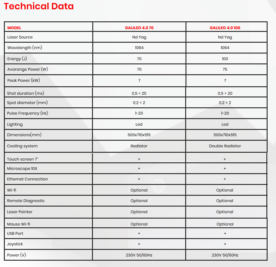 THE NEW GALILEO 4.0, latest addition to our range of laser welders, can weld any metal orthodontic structure – including Titanium –with the utmost precision. This laser is equipped with an enhanced cooling circuit, and it’s a plug-and-play device, immediately installed and ready to use in any location within the lab. Entirely re-designed and upgraded in several functionalities, the GALILEO 4.0 is available in the 70 and 100 joules version. The working chamber is wide, and based on the dental technician’s needs; the screen is now a also a handy 7” that can also visualize the working chamber and remotely connect for diagnosis. An adjustable nozzle supplies the Argon gas, essential for Titanium welding and improving the result on any alloy.
