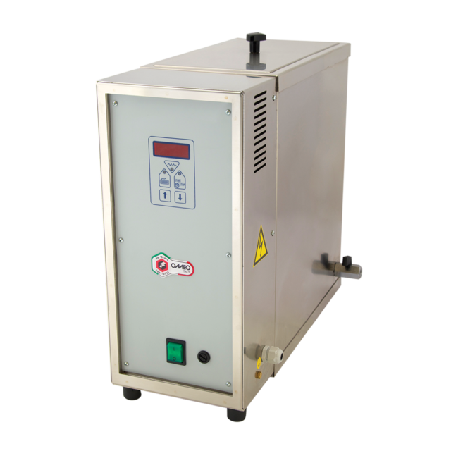 Polymerizing units for 6 or 12 muffles. This units are entirely made of stainless steel. The electronic board controls polymerizing cycles and gradual switching off. In this way the muffles naturally cool to avoid micro cracks of resins. No electric component can come in contact, even accidentally, with water or steam, in compliance with the European Standards. The polymerizing units are equipped with a tap to drain water.
