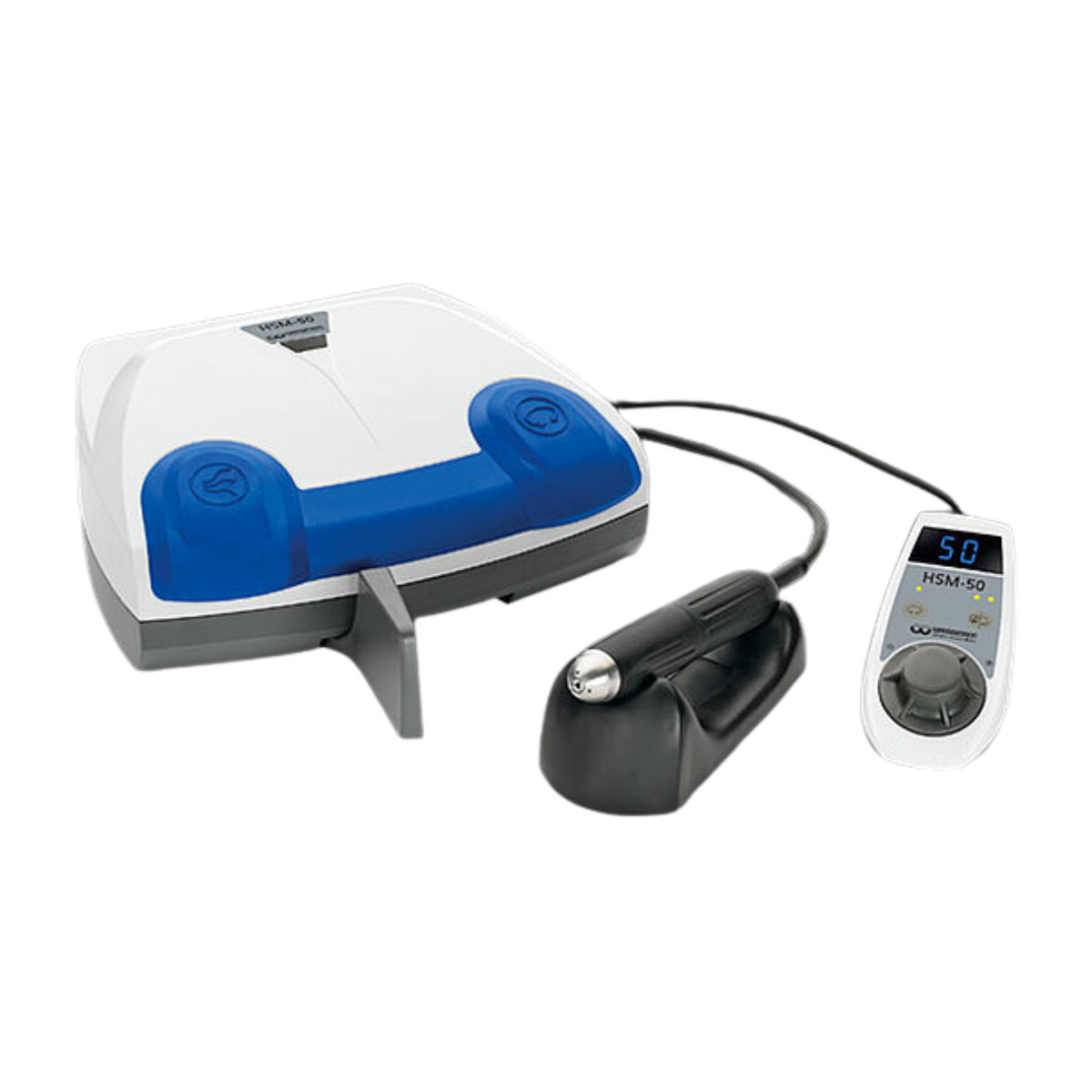 The HSM-50/ W&H Perfecta 600 is a latest generation powerful and multifunctional motor handpiece. Particularly comfortable: The external operating element. It allows the user not only particularly simple control but also simultaneous control of all functions and operating states, as well as infinitely variable speed control. In addition the HSM-50 has an extremely efficient blow-out function – it makes the constant move for the air gun a thing of the past.