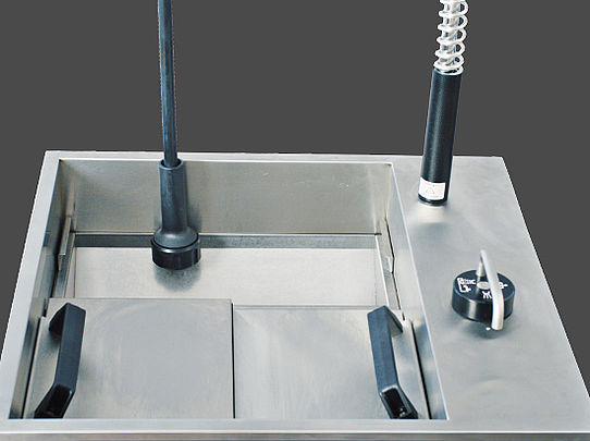 This well-designed free standing unit with integrated spray gallows scalds up to 12 flask halves simultaneously and fully automatically. The multifunction touch-screen terminal offers diverse functions and reproducible procedures by simple programming. The Wapo-Ex 12 II is very durable and stands out thanks to its flexible usage, programmable timer and automatic wax removal. The electronic water level gauge, the leakage signal and the inlet limitation ensure additional safety.