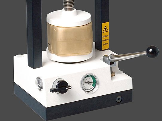 - break-resistant hydraulic press in drawn steel for pressing 1–3 or 2–4 flasks